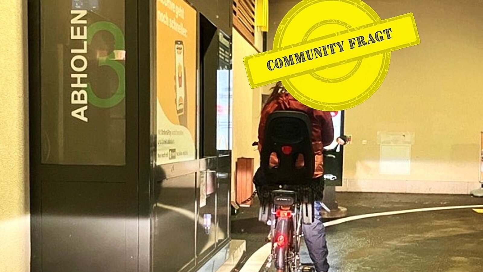 Ein Velo, ein Drive-in-Schalter – und die Frage: Wenn ich ohne Auto unterwegs bin, darf ich trotzdem bequem im McDrive bestellen? Viele Fast-Food-Fans, die mit dem Velo unterwegs sind, würden sich das wünschen. Leserin Susanne G. (Name der Redaktion bekannt) hat die Frage bei STREETLIFE eingereicht.