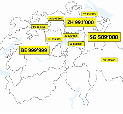 Autonummern – so hoch zählen Schweizer Kantone aktuell