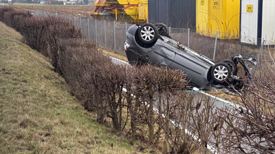 Am Radio gefummelt – VW überschlägt sich und landet auf dem Veloweg