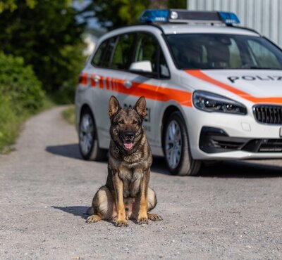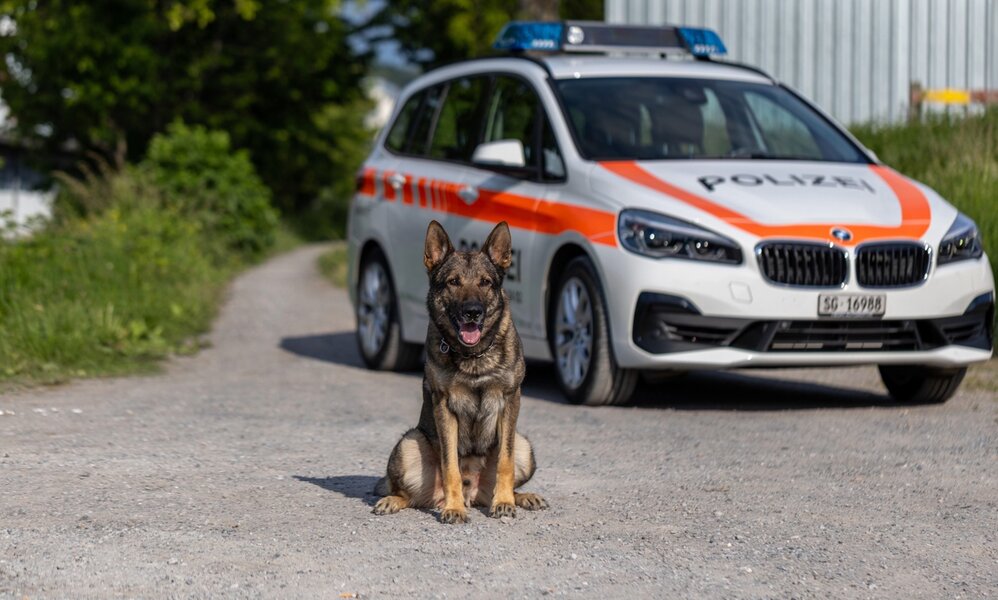 In der Nacht von Montag auf Dienstag brachen Autodiebe in eine Garage in Ermenswil SG ein. Dort stahlen sie gleich drei Fahrzeuge – darunter einen Porsche Boxster. Einer der mutmasslichen Täter, ein 16-jähriger Franzose, wurde nach der Flucht von Diensthund Erol im Unterholz aufgespürt. Seine Komplizen sind weiter auf der Flucht.