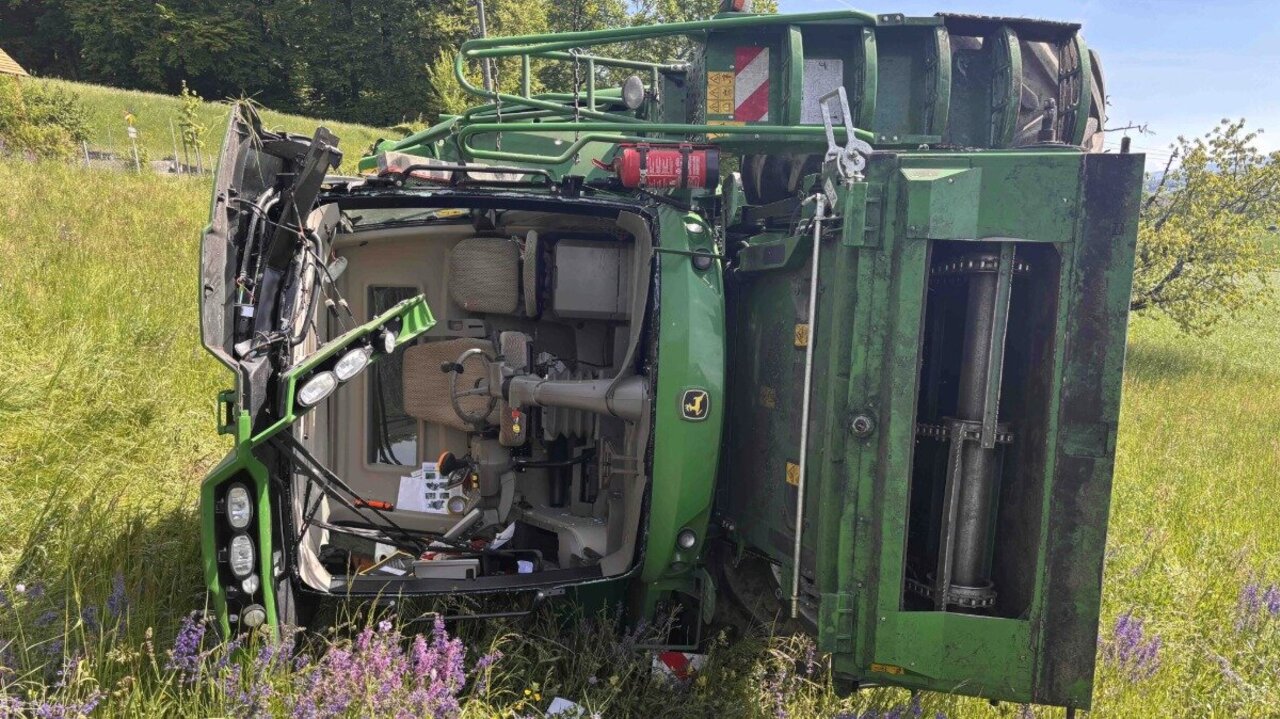 Der Mann hat Glück im Unglück: Er übersteht den Unfall ohne Kratzer. Seinen weissen Skoda musste hingegen eine Bergungsfirma abtransportieren.