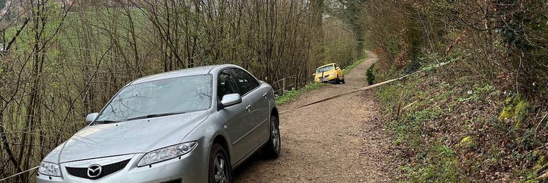 Zwei Fahrzeuge auf Feldweg