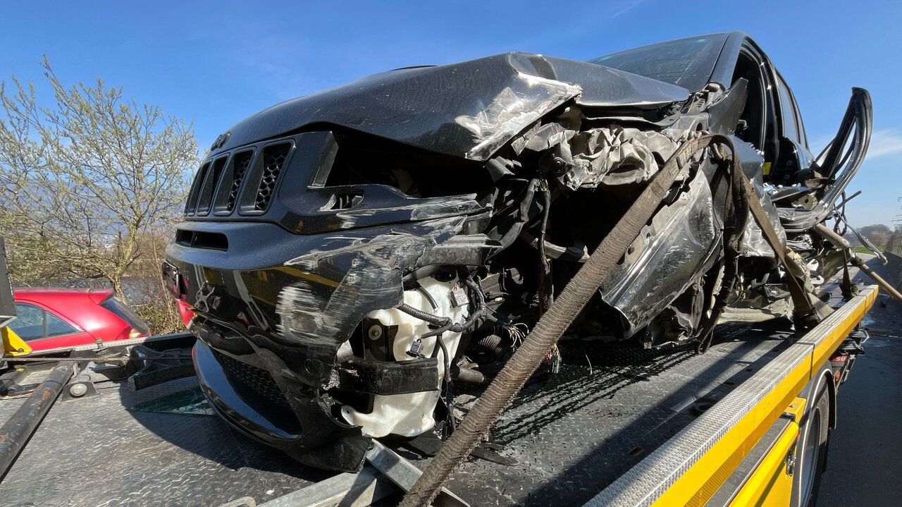 Doch die Diebesflucht verlief anders als gedacht: Auf der Abwärtsfahrt verlor er in einer Linkskurve die Kontrolle über den Kombi und knallte in eine Stützmauer.