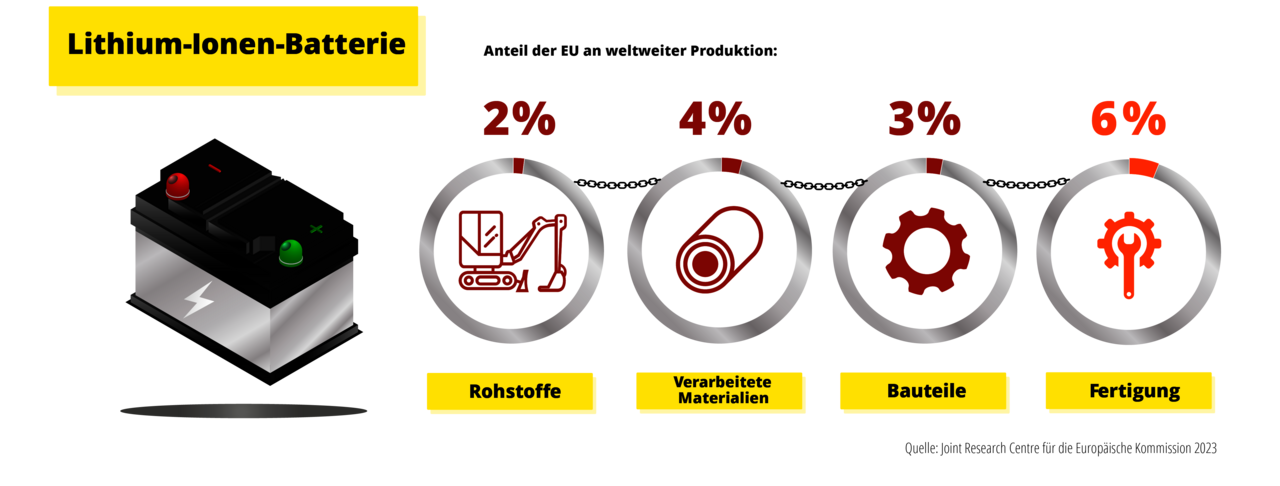 Elektroautos sind auf dem Vormarsch. Waren Verbrennungsmotoren einst das Herzstück von Autos, sind es nun Batterien. Nur ein kleiner Anteil der Lithium-Ionen-Batterien wird in der EU gebaut.
