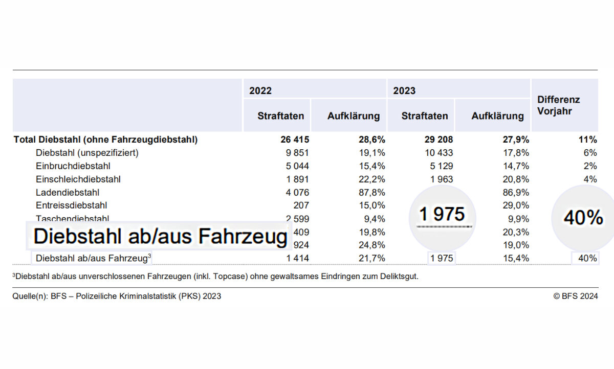 Diebstähle aus Autos: Zunahme von 40 Prozent allein in Zürich