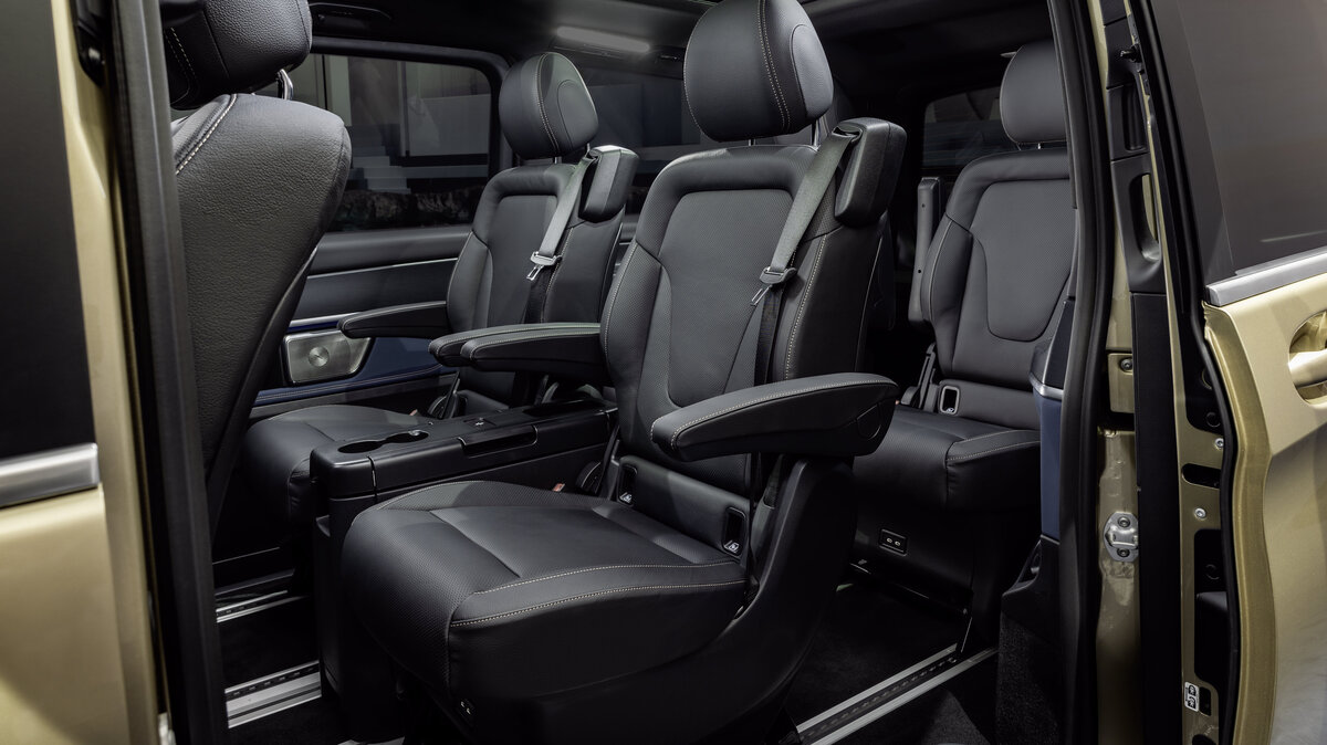 Mit dem EQV ist Mercedes den gleichen Weg gegangen. Der Elektro-Van ist aus der von einem Diesel angetriebenen V-Klasse entstanden, die wiederum auf dem Lieferwagen Vito basiert. Da sich der EQV wie die V-Klasse an Privatpersonen richtet, hat Mercedes jedoch deutlich höhere Ansprüche an Komfort und Ausstattung als beim Vito. So sind auf Wunsch Ledersitze, Multimediasystem und edle Materialien mit an Bord. Sein E-Motor leistet 204 PS (150 kW) und beschleunigt den EQV auf bis zu 160 km/h. Zur Auswahl stehen zwei Versionen mit 5,14 oder 5,37 Metern Länge, die es beide mit einem grösseren oder kleineren Akku mit 60 oder 90 Kilowattstunden (kWh) Kapazität gibt. Damit kommt der EQV 302 bis 378 Kilometer weit und ist am Schnelllader in rund 40 Minuten zu 80 Prozent geladen. Der Elektro-Van von Mercedes bietet maximal acht Sitzplätze und packt 610 bis 5010 Liter in den Kofferraum. In Kürze startet die überarbeitete Version des EQV mit dem neuesten Multimediasystem und digitalen Instrumenten.