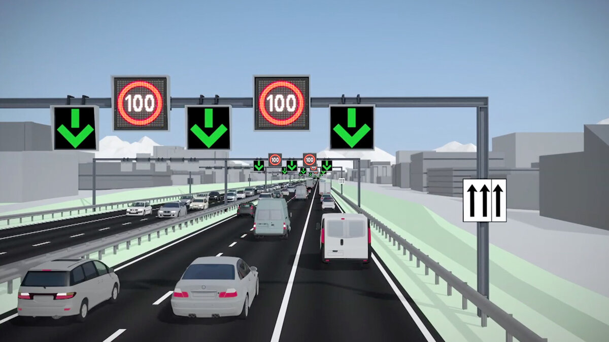 Ist die Autobahn dreispurig, so orientieren sich die Fahrzeuge auf der mittleren Spur zusammen mit den Fahrzeugen der rechten Spur am rechten Fahrbahnrand.