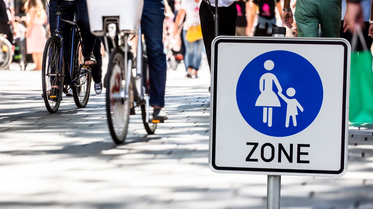Innenstadt-Boulevards sind oft klar signalisiert als Fussgängerzone. Also lieber absteigen und schieben – das spart Geld und Ärger.