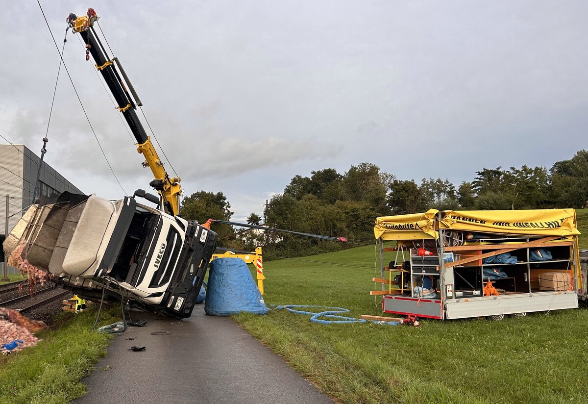 Das stinkt zum Himmel. Ein LKW, beladen mit Schlachtabfällen, kippte am Donnerstag in Staad SG auf die Zugstrecke St. Gallen – St. Margrethen. Wegen der Bergungs- und Reinigungsarbeiten blieb das Trassee über fünf Stunden gesperrt.
