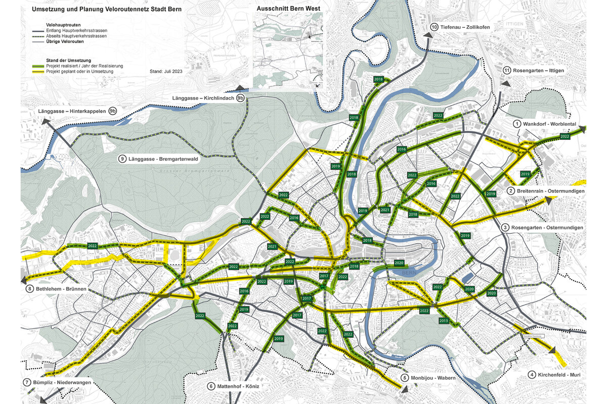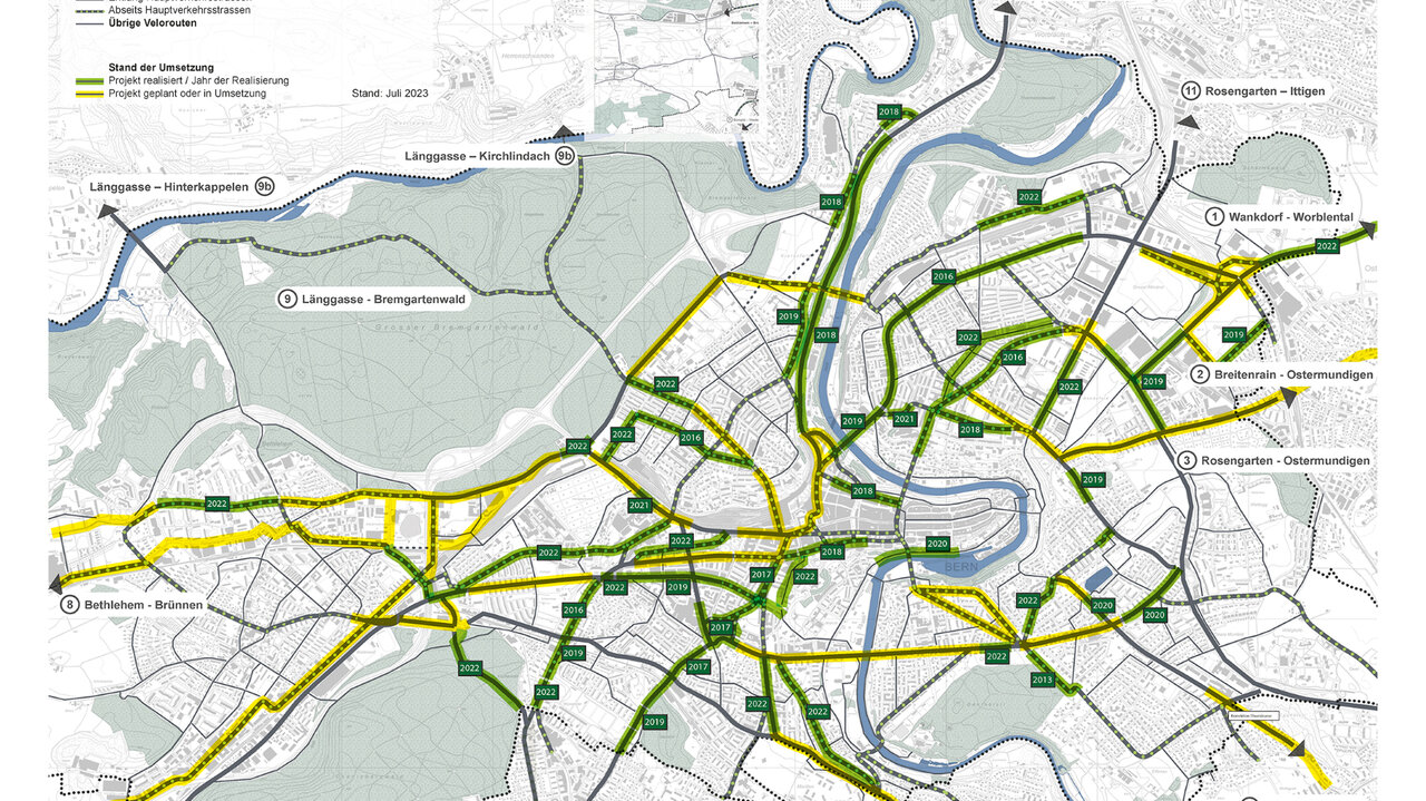 Ein etwas anderes Bild präsentiert sich hingegen in Basel. Obwohl bekannt für ihre Pro-Velo-Politik, gibt es in der zweitgrössten Deutschschweizer Stadt noch keine konkreten Pläne für Velovorzugsrouten. Und trotzdem visieren auch die Velolenker am Rhein ein klares Ziel an. So ist im vergangenen Jahr die Initiative «Sichere Velo-Routen in Basel-Stadt» innert kürzester Zeit mit 3323 gültigen Unterschriften zustande gekommen. Der Regierungsrat muss nun einen Gesetzesvorschlag ausarbeiten.