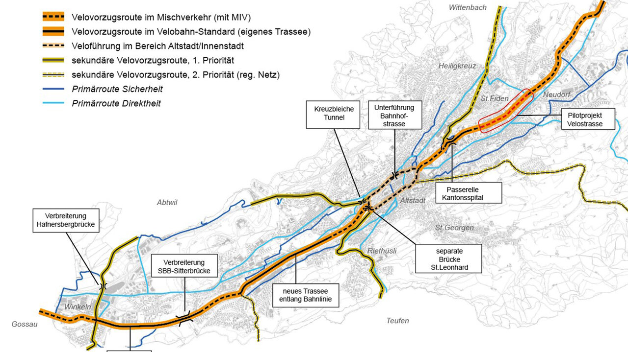 Doch Zürich ist längst nicht die einzige Stadt, die ihre Attraktivität für die Drahtesel auf Kosten der Autos steigern möchte. Bern, Luzern (siehe interaktive Karte unten), St.Gallen, aber auch Winterthur, die gemäss Prix Velo velofreundlichste aller grösseren Städte, treten für ähnliche Bestrebungen fest in die Pedale.