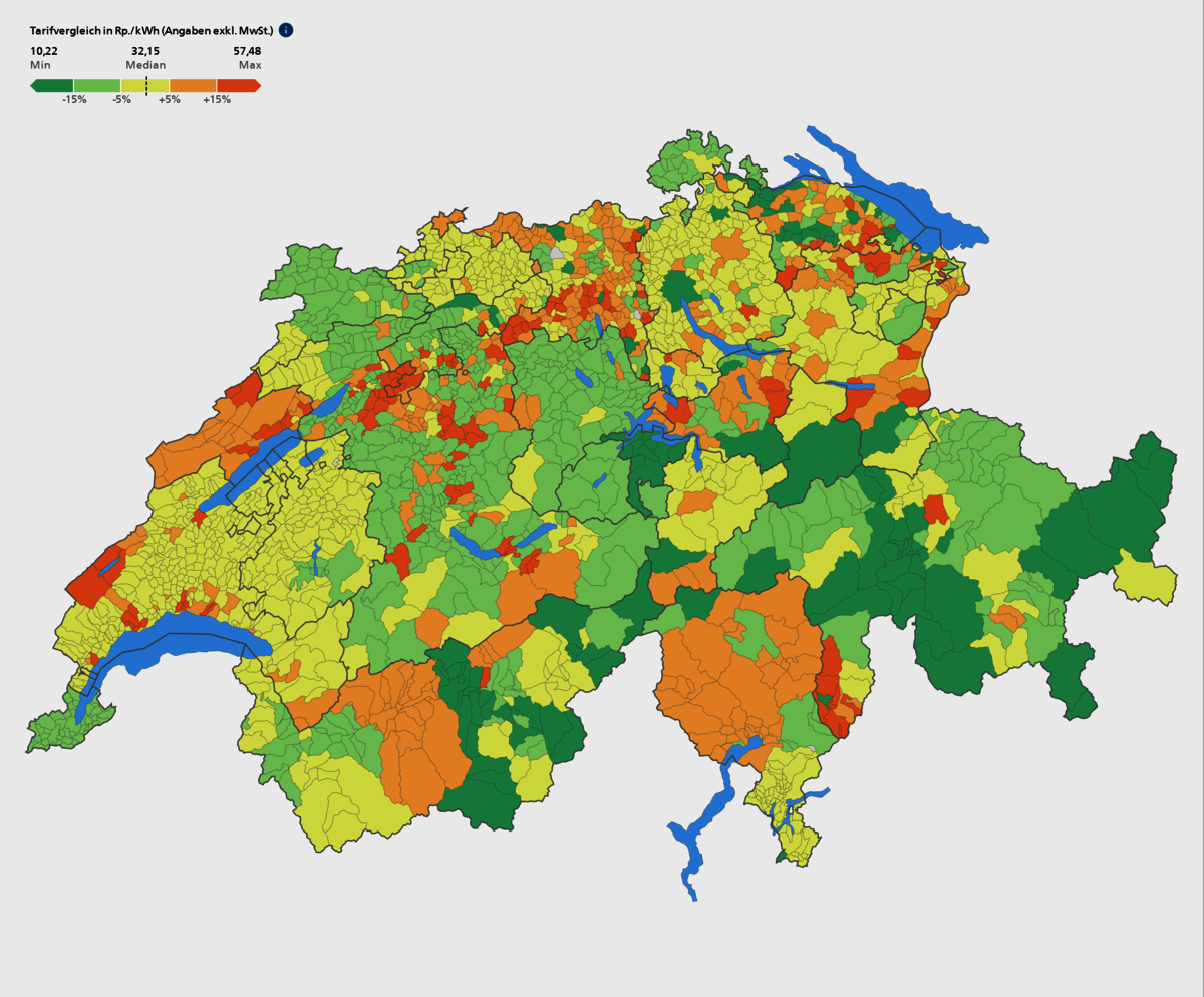 Besonders krass ist der Anstieg im Kanton Zürich. Der Kanton nahm in den letzten Jahren stets einen Podestplatz ein, wenn es um den Strompreisvergleich ging. So belegte er 2023 den zweiten Platz mit durchschnittlich 22,18 Rappen/kWh. Mit fast 10 Rappen mehr pro kWh rutscht der Kanton 2024 ins hintere Drittel. Einzig die Kundinnen und Kunden im Versorgungsgebiet des Elektrizitätswerks der Stadt Zürich EWZ dürfen sich freuen – denn es ist 2024 der günstigste Stromanbieter des Kantons mit durchschnittlich 24,5 Rappen/kWh.