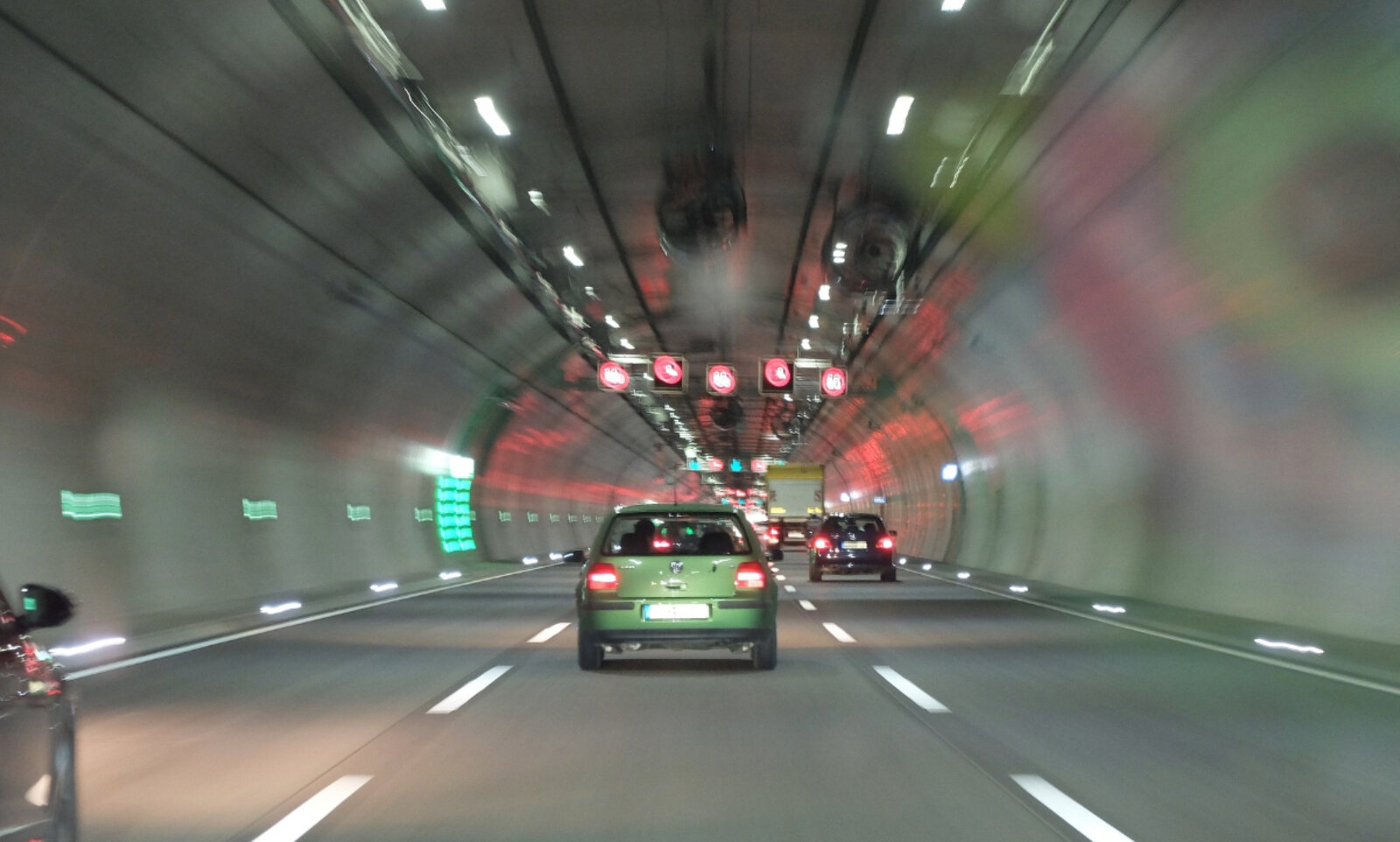 Die Halber-Tacho-Regel ist besonders im Tunnel wichtig. Tritt die Person im vorausfahrenden Auto nämlich unerwartet auf die Bremse, muss der Bremsweg reichen. Ein Ausweichen nach rechts ist im Tunnel schlicht nicht möglich. Bei 100 Stundenkilometern beträgt der ideale Abstand demnach 50 Meter.