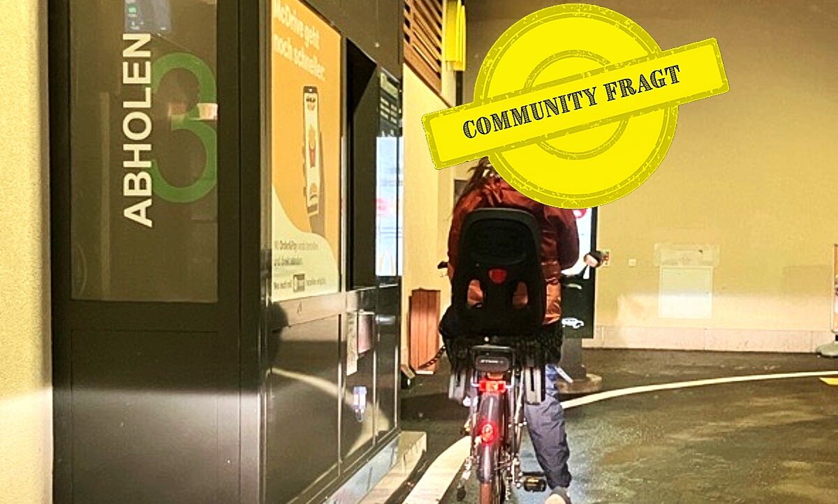 Ein Velo, ein Drive-in-Schalter – und die Frage: Wenn ich ohne Auto unterwegs bin, darf ich trotzdem bequem im McDrive bestellen? Viele Fast-Food-Fans, die mit dem Velo unterwegs sind, würden sich das wünschen. Leserin Susanne G. (Name der Redaktion bekannt) hat die Frage bei STREETLIFE eingereicht.