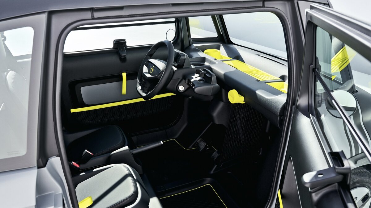 Trotz der winzigen Aussenmasse ist der Opel – dank einem geschickten Raumkonzept – im Innern äusserst geräumig. Hinter dem Fahrersitz und dem nach hinten versetzten Beifahrersitz gibt es genug Platz für Taschen, Rücksäcke oder ähnliches.