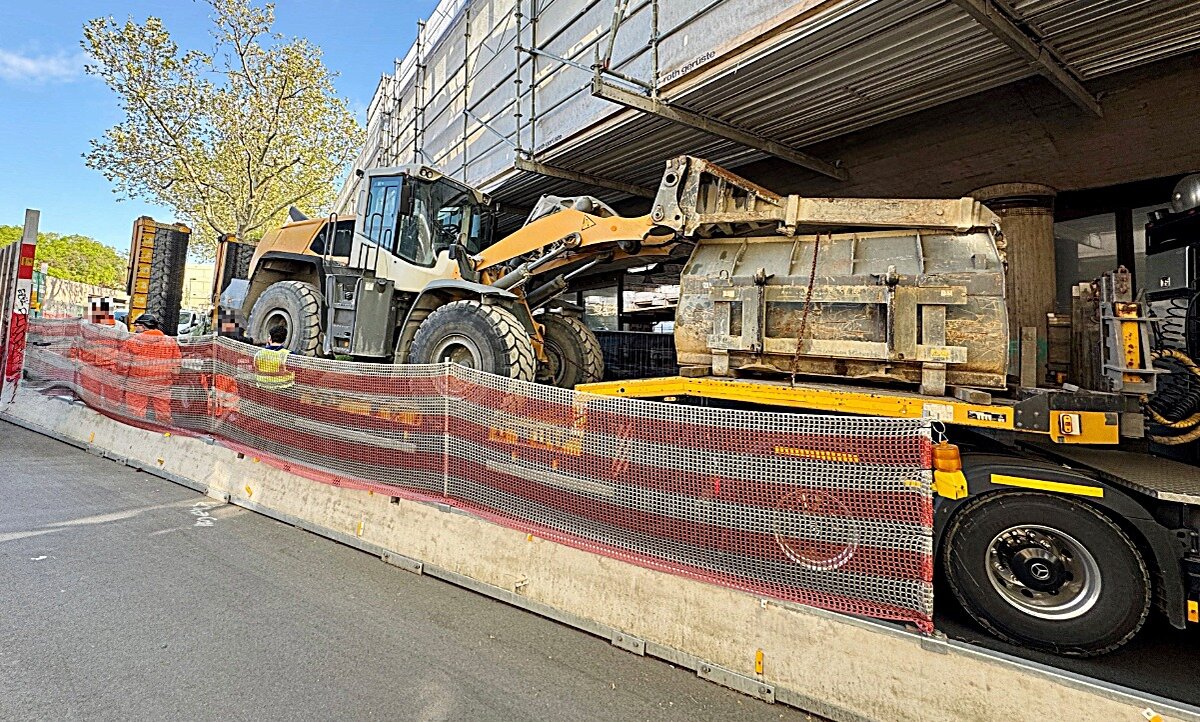 Ein Lastwagen, beladen mit einem Bagger, wollte unter der Baustellenbrücke an der Basler Schwarzwaldallee hindurchfahren – eigentlich kein Problem. Doch der Bagger überschritt die erlaubte Maximalhöhe von vier Metern. Grundsätzlich gilt: Fahrzeuge oder Ladungen, die diese Höhe überschreiten, benötigen eine Sonderbewilligung.