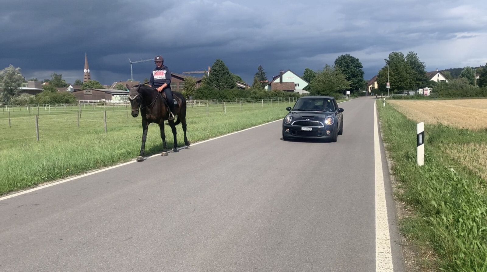 Wenn sie sich erschrecken, können sie unerwartet nach vorne oder auf die Seite springen – selbst wenn ein Tier grundsätzlich verkehrssicher ist. Autofahrende sollten erst dann überholen, wenn es der Gegenverkehr in einem sicheren Rahmen zulässt. Hier gilt: Langsam fahren und den Bogen wirklich gross ansetzen. Wollen Reiter oder Kutschen abbiegen, müssen sie Handzeichen geben und einspuren. Auch hier sollte das Gespann nicht auf der rechten Seite überholt werden. Am besten wird kurz gewartet, bis das Tier auf der anderen Strasse angekommen ist. Danach kann man langsam vorbeifahren. Im STREETLIFE-Video erkärt der Pferdewirt Sandro Gabathuler im Detail, worauf man achten muss.