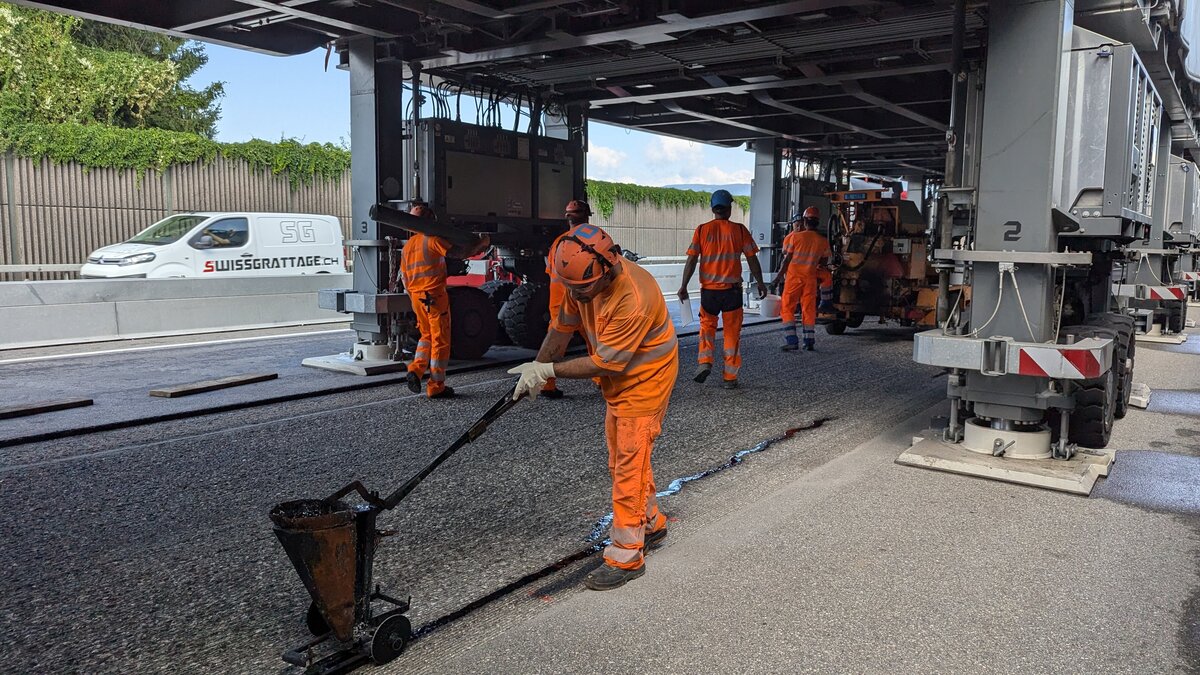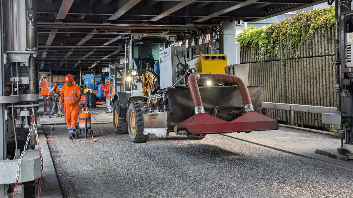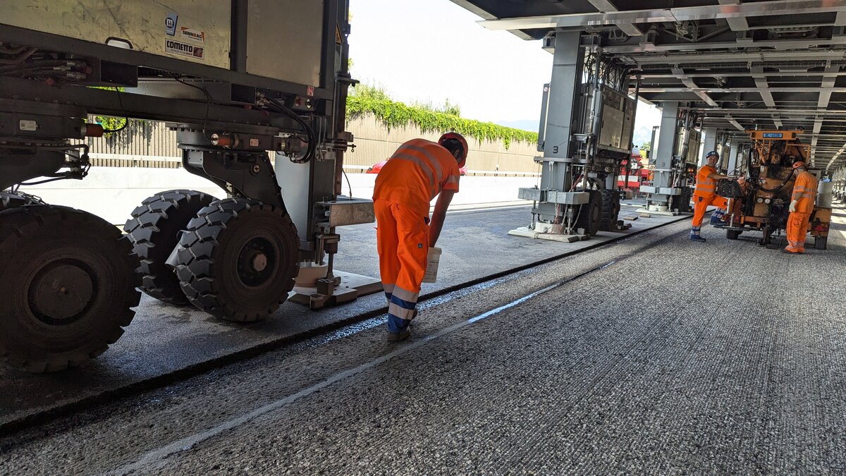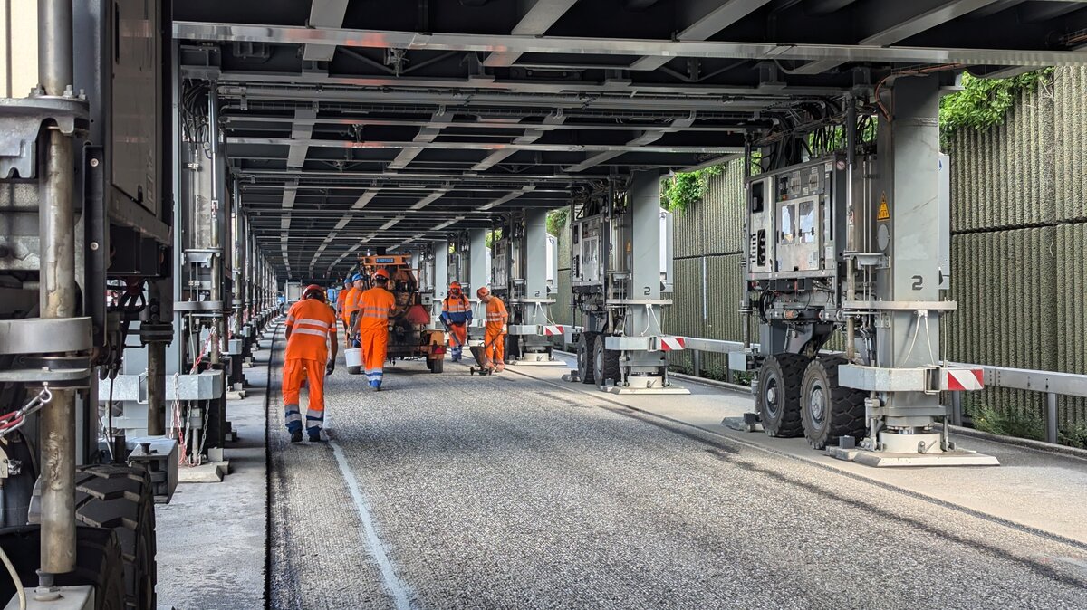 Für die Bauarbeiten macht die ASTRA Bridge genau das, was sie soll. Die Bauarbeiter können geschützt vom Verkehr arbeiten. «Das ist unser Bereich, hier sind nur wir», erzählt Vorarbeiter Enes Omercevic von der Baufirma Tozzo AG. «Dadurch ist das Arbeiten viel sicherer.» Das ist nicht der einzige Vorteil für ihn und seine 13 Kollegen, die seit April unter der ASTRA Bridge im Einsatz stehen. «Bei Strassenbaustellen müssen wir oft auch nachts oder am Wochenende arbeiten. Hier hatten wir keine einzige Nachtschicht. Wir hatten normale Arbeitszeiten von Montag bis Freitag.» Darüber würde sich auch die Familie zuhause freuen.