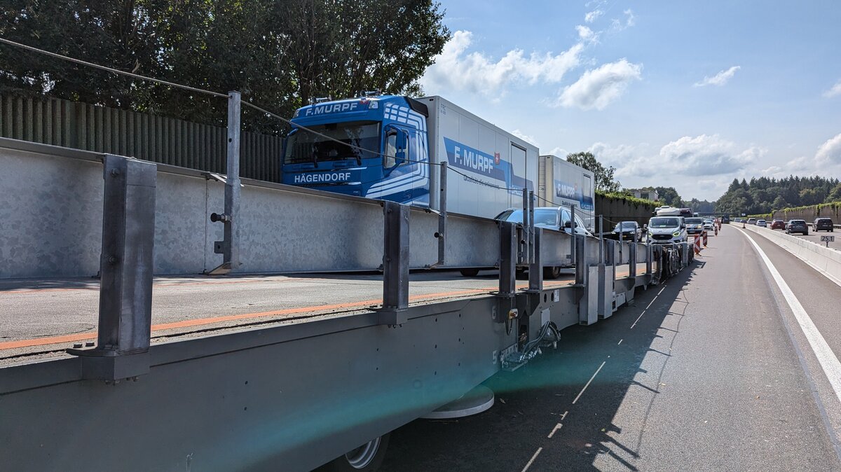 So oder so ist der Verkehr normalerweise auch in die Gegenrichtung betroffen und so oder so müssen die Bauarbeiter nur wenig Meter neben der rollenden Blechlawine arbeiten. Beides soll die sogenannte ASTRA Bridge verhindern. Es handelt sich um ein 25 Millionen Franken teures Prestige-Projekt des Bundesamtes für Strassen (ASTRA). Diese Brücke führt bei Bauarbeiten auf der Autobahn den Verkehr nicht um die Baustelle herum, sondern darüber hinweg.