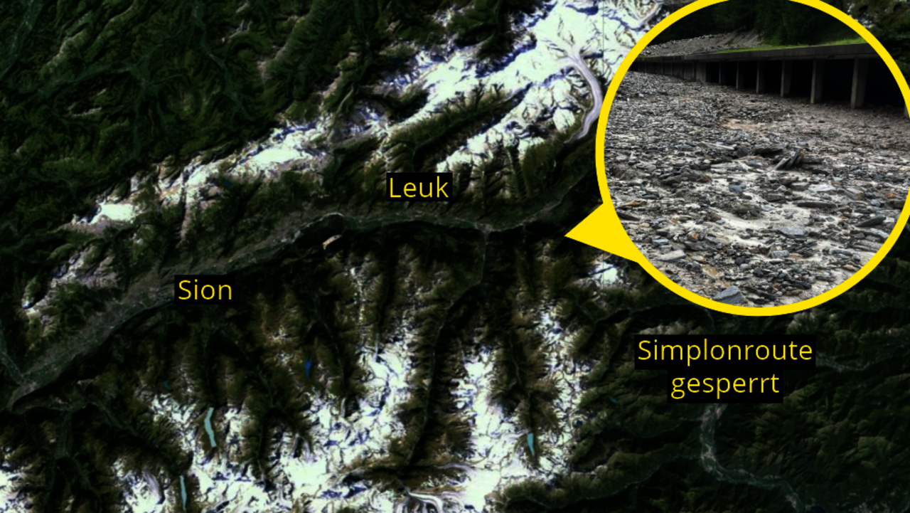 Ein Murgang verschüttete am Wochenende die Simplonroute auf Höhe der Galerie Engi. Weitere Pässe, die wegen der Unwetter gesperrt sind, sind: Nufenenpass, Furkapass, Grimselpass, San Bernardinopass, Simplonpass. Der TCS gibt aktuell keine Prognosen darüber ab, wie lange die verschiedenen Pässe geschlossen bleiben dürften. Grund ist das Wetter, das sich rasch ändern kann.