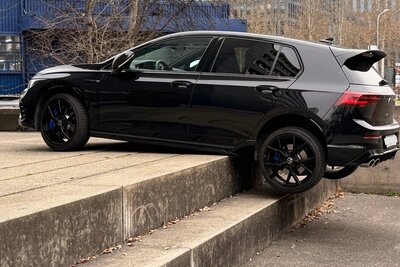 Falsch abgebogen – Mietauto bleibt auf Betontreppe stecken